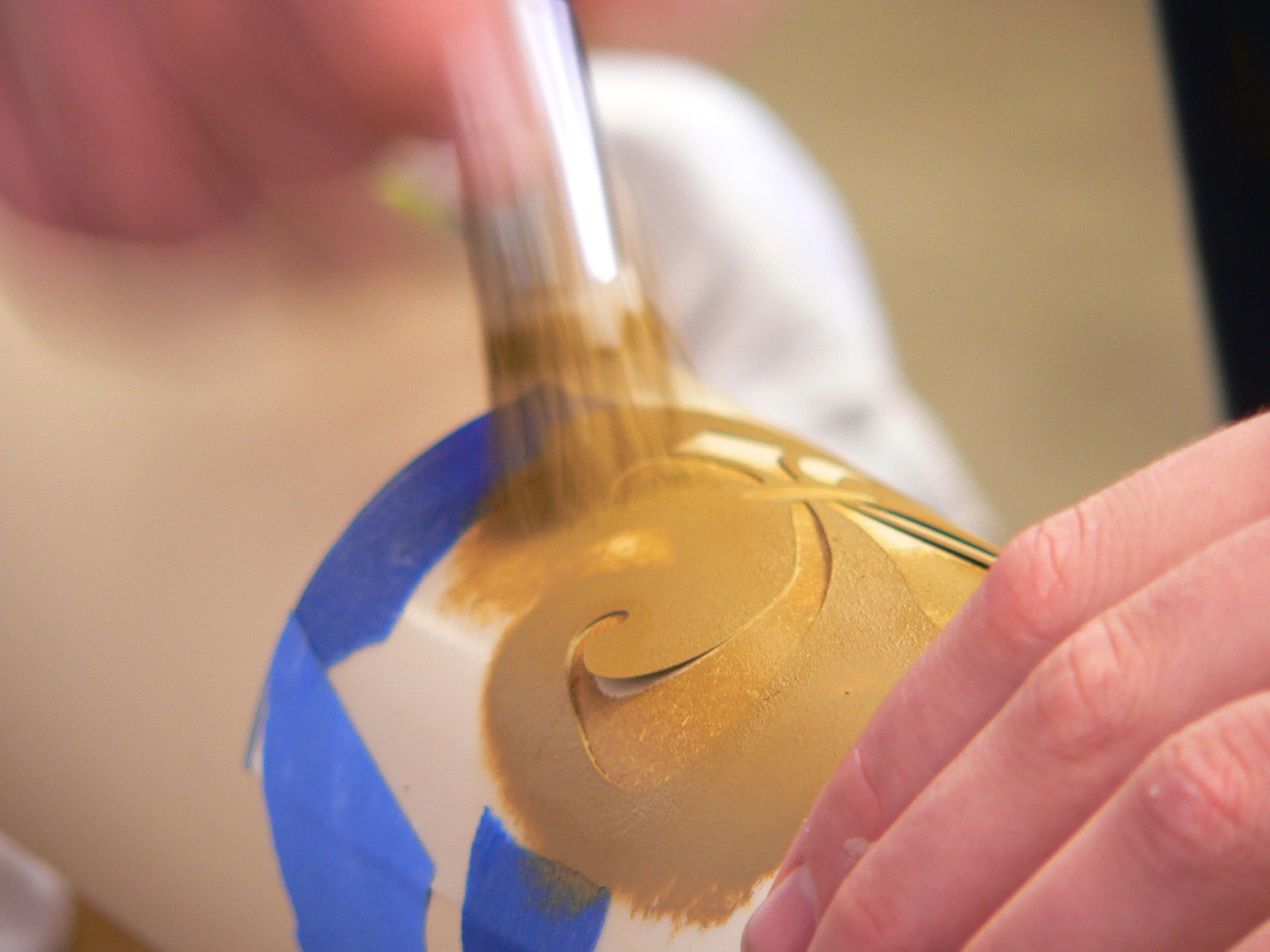 As the pipes emerged from our pipeshop with new bodies, inserts and ears (where needed), one by one they went through our finish room for acid-wash priming and basecoating. Stencils and borders were then applied by hand using traditional techniques. As pipes were completed they were carefully packed while the rest of the organ was prepared for delivery.